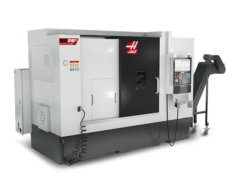 Los tornos de bancada inclinada Haas de la serie SB presentan un diseño de bancada inclinada que proporciona una excelente rigidez y estabilidad térmica, así como una eficiente recogida de virutas. La bancada inclinada también permite un generoso recorrido del eje X en una superficie ocupada en planta más reducida, y proporciona una base robusta para soportar la torreta a lo largo de todo el eje Z. Los modelos de dos ejes tienen una bancada inclinada de 30°; los modelos con eje Y tienen una bancada inclinada de 30° con un ángulo de cuña del eje Y de 30°.