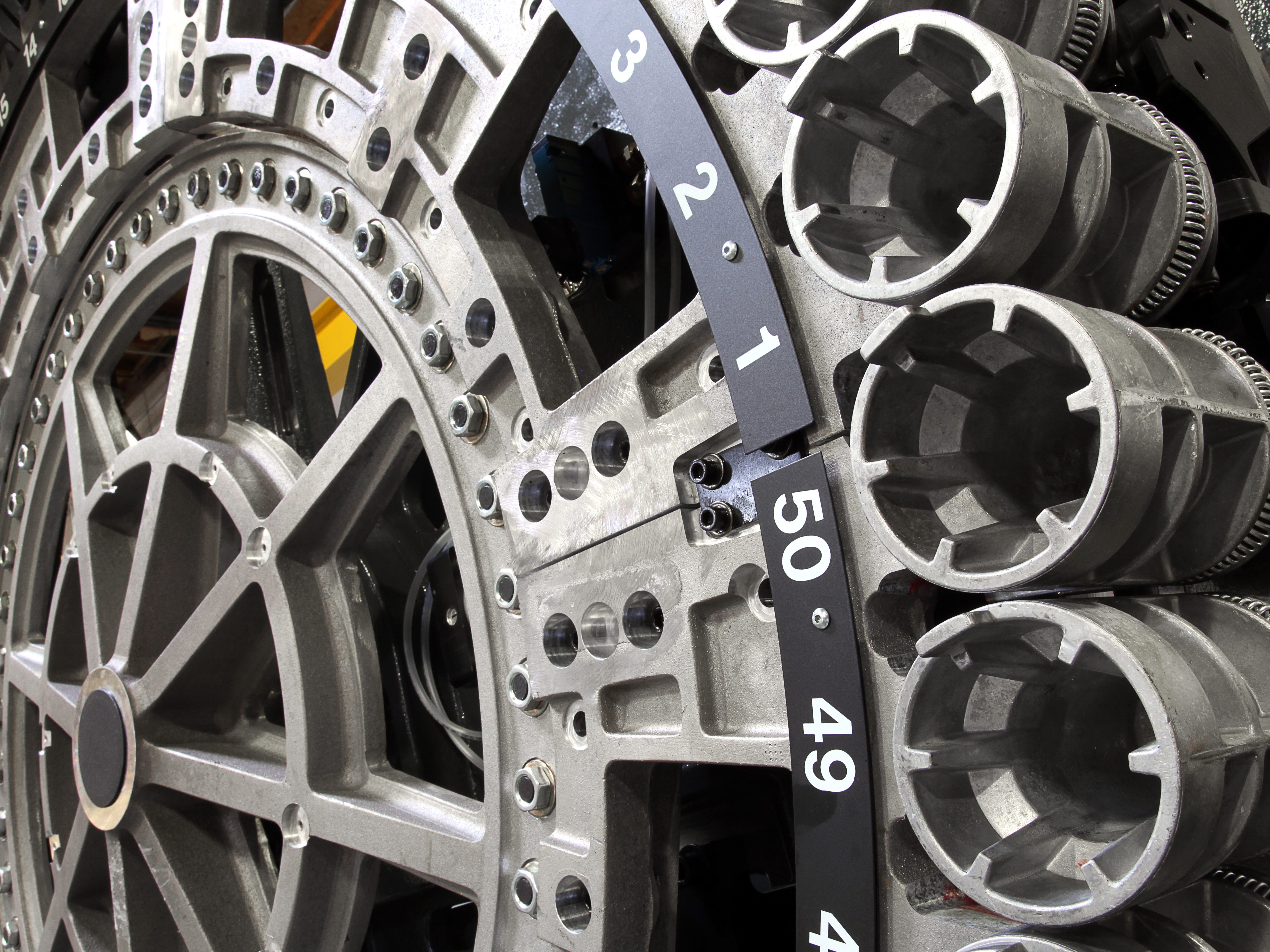 Las necesidades de capacidad de herramientas pueden variar en función del trabajo o proceso. Las máquinas de doble columna de Haas se entregan de serie con el cambiador de herramientas de montaje lateral de 50+1 posiciones integrado de Haas. Este diseño resistente y fiable se fabrica internamente para garantizar una vida útil prolongada y un funcionamiento sin mantenimiento.