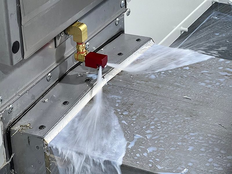 La NUEVA boquilla de lavado del eje Y elimina las virutas de las protecciones de guías traseras de dicho eje para evitar la acumulación de virutas detrás de la mesa en operaciones de mecanizado prolongadas.