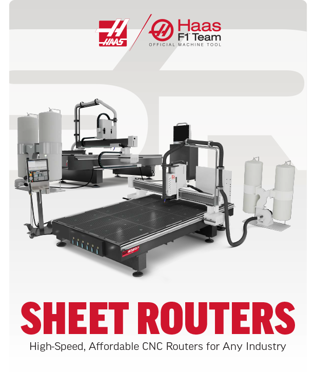 Los encaminadores de láminas de la serie SR de Haas son alternativas asequibles a las fresadoras de pórtico para cortar materiales no metálicos más ligeros, como madera, plásticos, espuma de alta densidad y compuestos. Los grandes recorridos de estas máquinas permiten trabajar fácilmente con láminas completas de material, extrusiones largas o diversos ajustes de piezas más pequeñas.