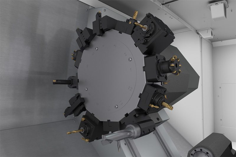Y-Axis CNC Lathe with 11.75" x 22.5" max capacity and 2.5" bar capacity