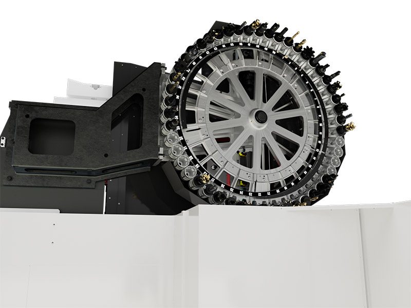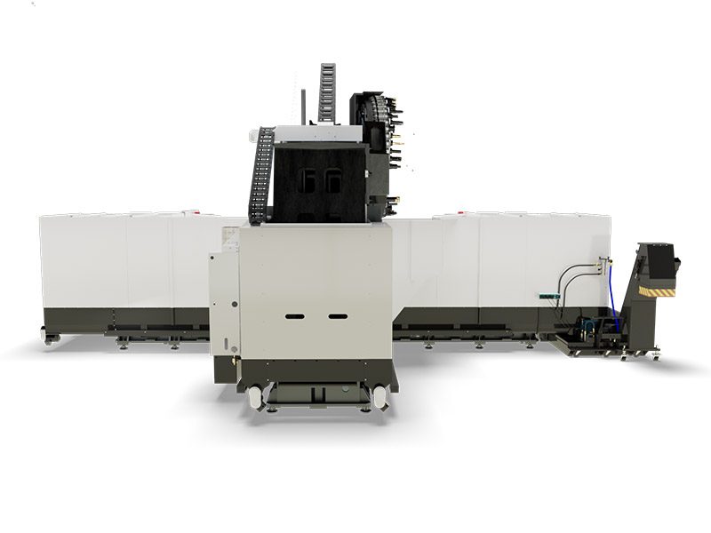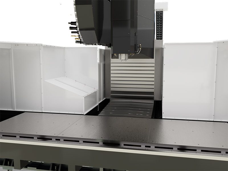 Our large-frame 50-taper VMC gives the ultimate flexibility for large and heavy parts. It provides 150" x 50" x 50" (3810 x 1270 x 1270 mm) travels, heavy-duty cutting capacity, and a massive table that handles parts up to 10,000 lb.