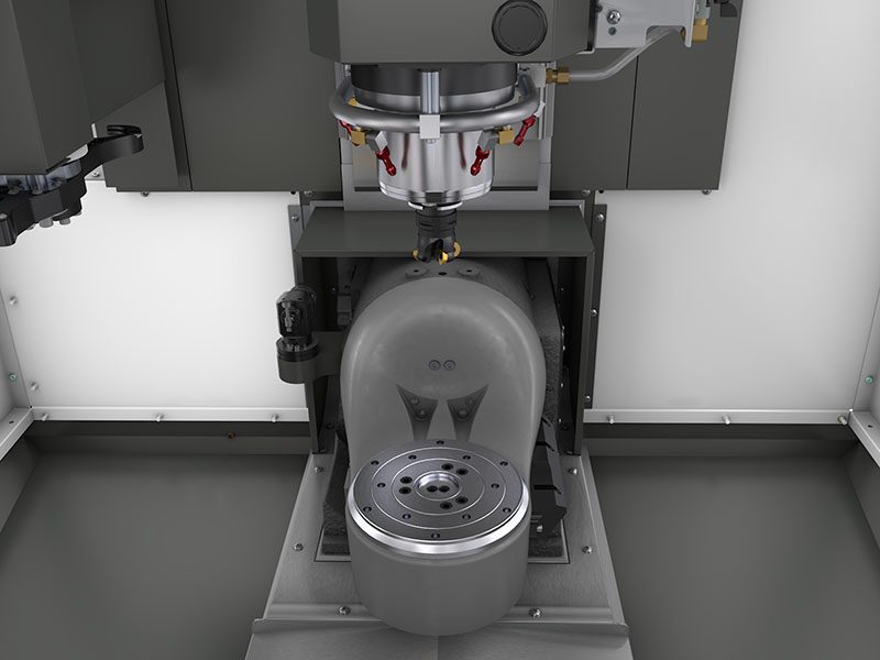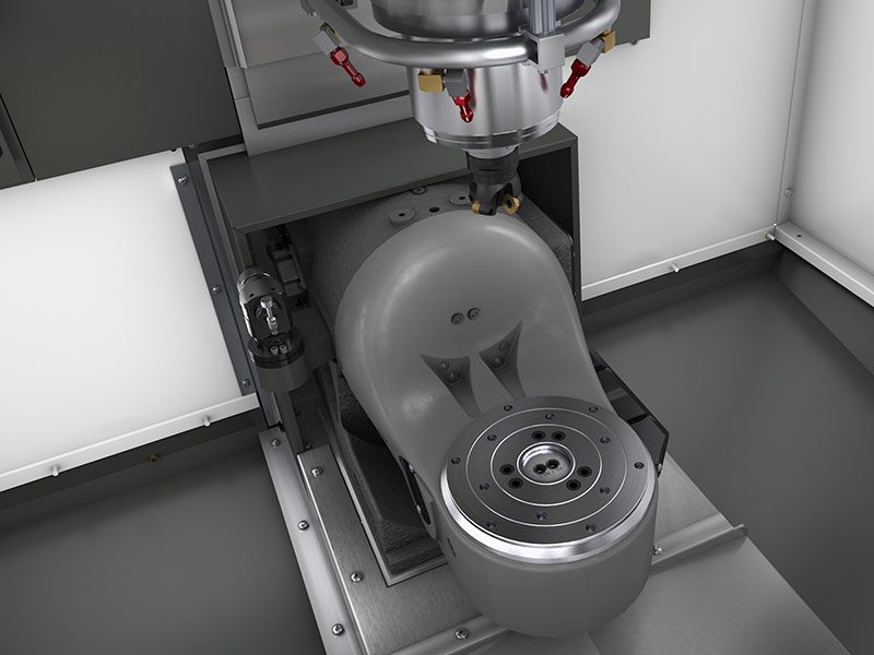 In 5-axis machining, your part and workholding must be able to rotate and tilt within the workspace, allowing you to reach all areas of the part, without interference or collisions. This yields a cylindrical work envelope that is smaller than the machine travels.