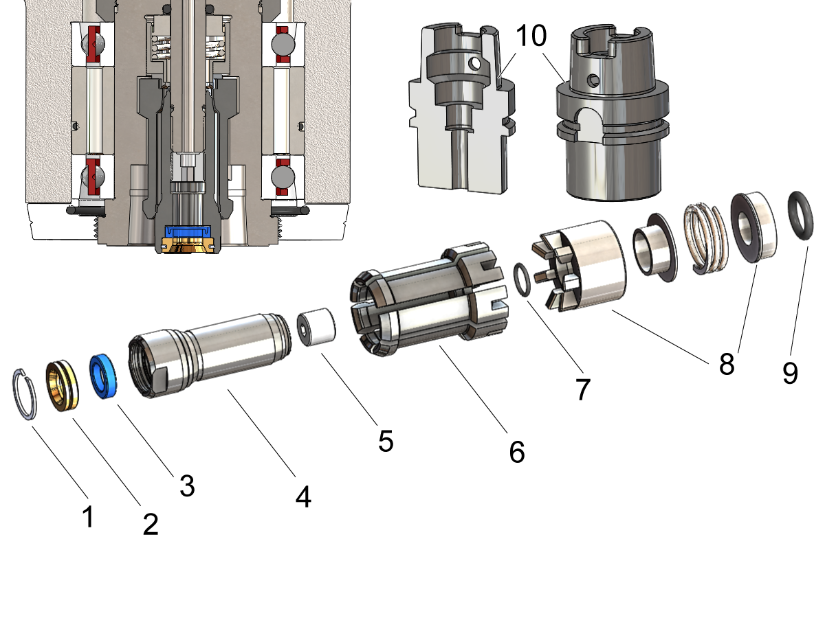 Note: Each machine uses specific tool holders. All tools must be balanced to the maximum RPM of the machines spindle model. Tool holder type and RPM values can be found in the introduction of the HSK - Spindle - Troubleshooting Guide. Refer to the maintenance section for correct tool holder maintenance.