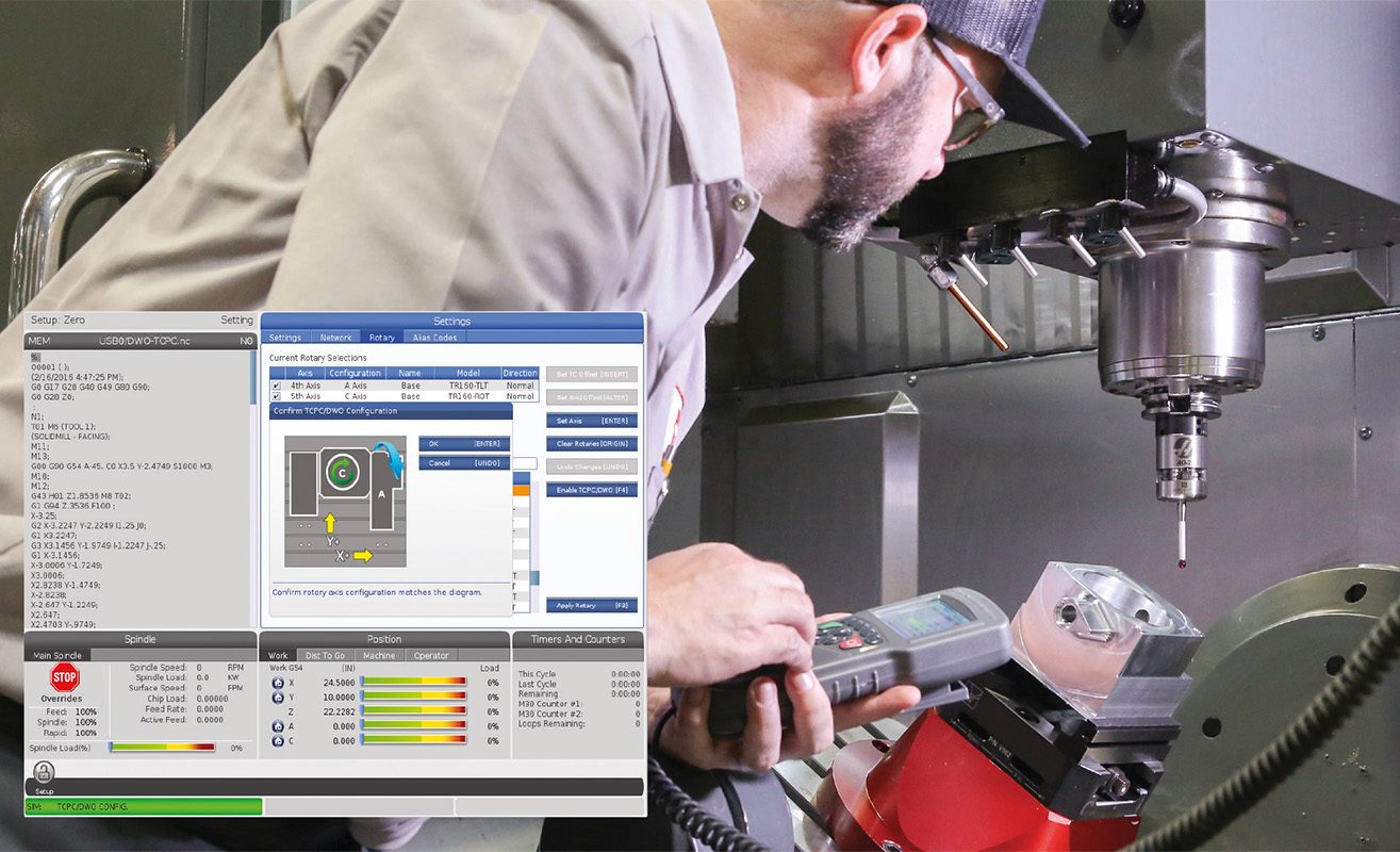 Met behulp van DWO/TCPC (Dynamic Work Offsets / Tool Center Point besturing) kunt u uw CAM programma van tevoren opstellen en vervolgens de werkstukopspanning en het werkstuk overal op de tafel zetten, zonder dat u uw programma aan hoeft te passen!