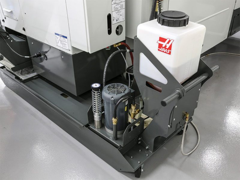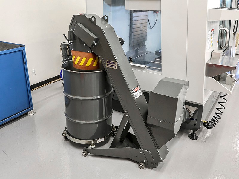 SPANENCILINDER: Het is handig om tenminste één cilinder hebt om spanen in te lozen. Een spanencilinder van 55 gallon op wielen is handig voor Haas draaimachines met een spanentransporteur, of een Haas frees met hefoptie voor spanen. Machines met alleen een spanentransporteur hebben een grotere ton nodig die onder de spanentrechter past. Een of andere spaancilinder maakt het oneindig veel makkelijker om uw machine schoon te maken.