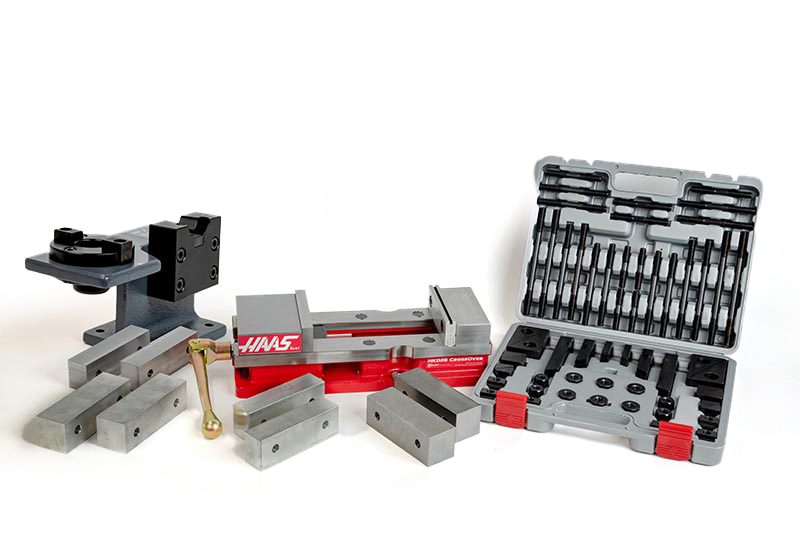 GEREEDSCHAPSHOUDER: Ook dit kan variëren, maar er zijn basisgereedschapshouders voor een frees: 1/2" en 1/4" freeshouders, boorklauwplaten zonder sleutel en ER32 spantanghouders en een spantangset. In een complete set gereedschapshouders zitten meerdere ER16, ER25 en ER32 spantanghouders met de bijbehorende spantangsets. Bij de meeste spantangsets zitten de benodigde moersleutels. Ook zijn aantrekbouten nodig. De meeste Haas-frezen zijn uitgerust met een gereedschapopspanner, maar een goede op een werkbank gemonteerde versie is ook handig. Haas draaimachines hebben een basisset gereedschapshouders, maar ER-spantanghouders en rechte schacht-spantanghouders maken uw startset compleet.