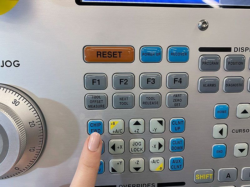 Spoel spanen naar de voorkant van de machine
