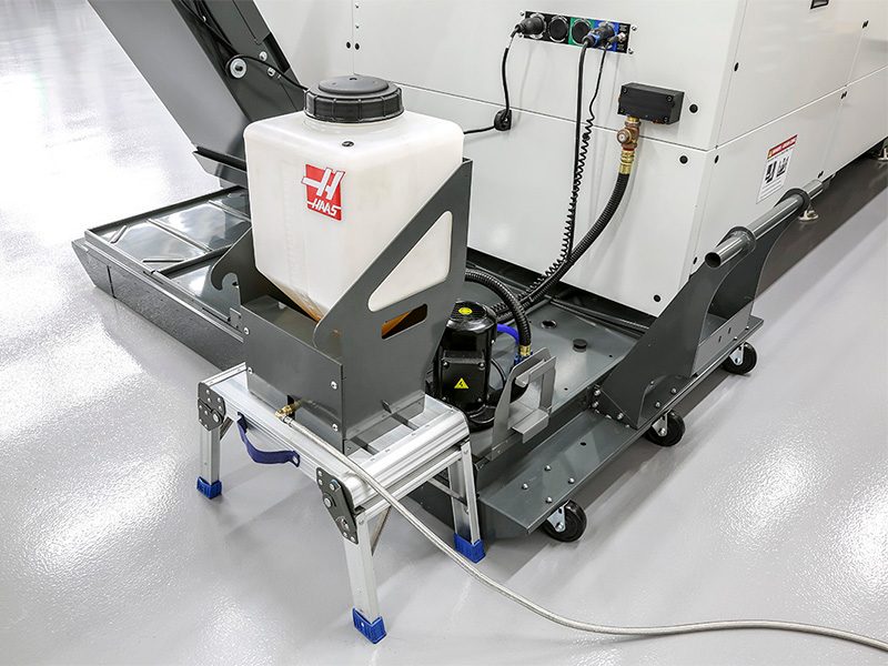 Stop hauling buckets of coolant and water around your shop, and cleaning up spills along the way. Stop wasting time measuring and mixing to get the right ratio. Forget all those hassles and save a ton of time. The Haas Automatic Coolant Refill System monitors the machine coolant level, and automatically adds correctly mixed coolant to the tank. This saves the machine operator valuable time for other tasks, such as keeping the machine running and producing parts. The Haas Automatic Coolant Refill System is easy to operate, reliable, and inexpensive.