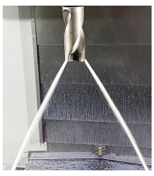 In this video, Scott and Matt demonstrate some of the advantages of the Haas TSC system by comparing traditional flood coolant and through-spindle coolant on the same drilling application.