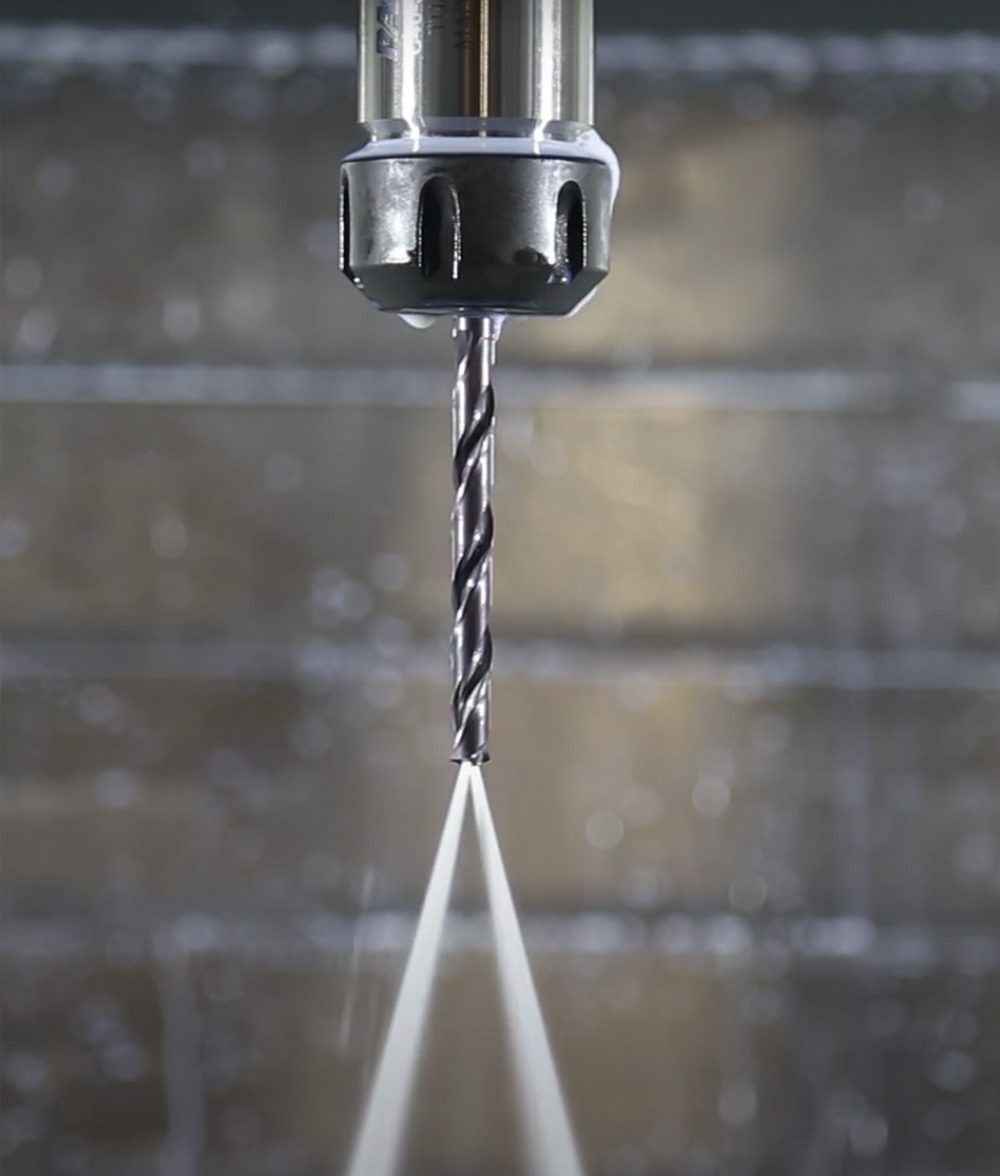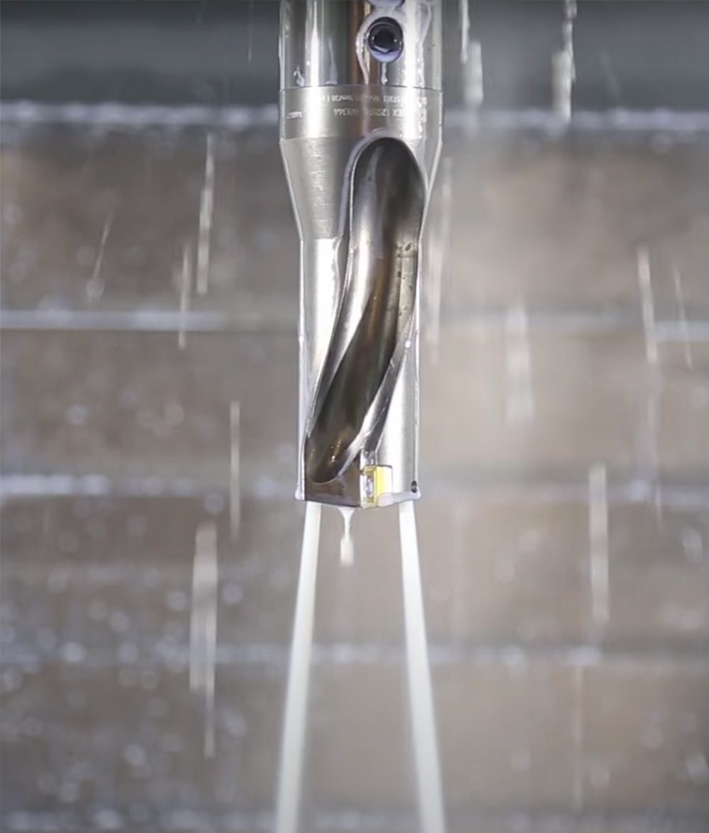 Carbide drill, single-shot drilling with through-spindle coolant: