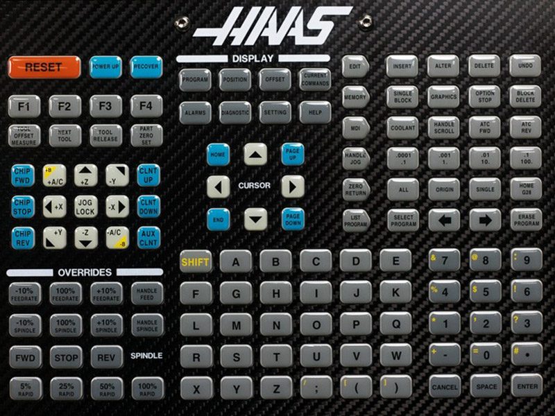 Our widescreen monitor for the Haas control provides a larger viewing area to display more of the information you need during programming and operation. The touchscreen interface speeds up programming and simplifies control navigation by allowing window selection, data entry, and other control functions without using the standard keypad. The genuine carbon fiber bezel is easy to clean, and adds a performance look to the machine.