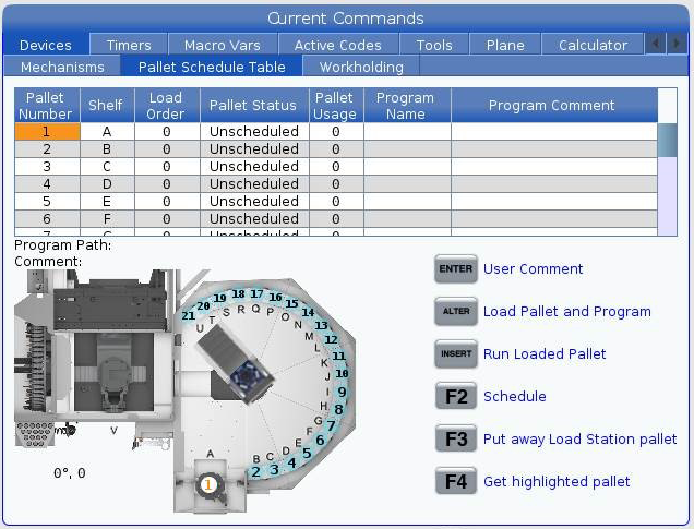 • Press ALTER to load the highlighted pallet into the machine and activate its designated program.