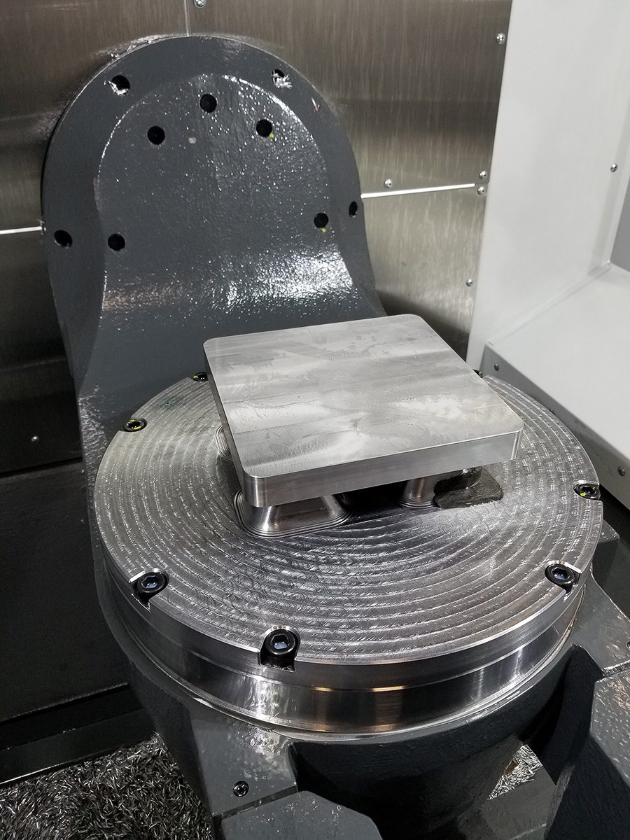 When the 20-Station Pallet Pool option is ordered with the machine, the customer gets a total of 21 pallets. Each pallet is 1" (25.4 mm) thick, and measures 7.9" x 7.9" (200 x  200 mm). Pallets are made of mild steel, with a precision machined top surface that can be drilled and tapped to accept custom tooling or standard vises. The work envelope with these pallets is 8" (203 mm) Diameter x 16.5" (419 mm).
