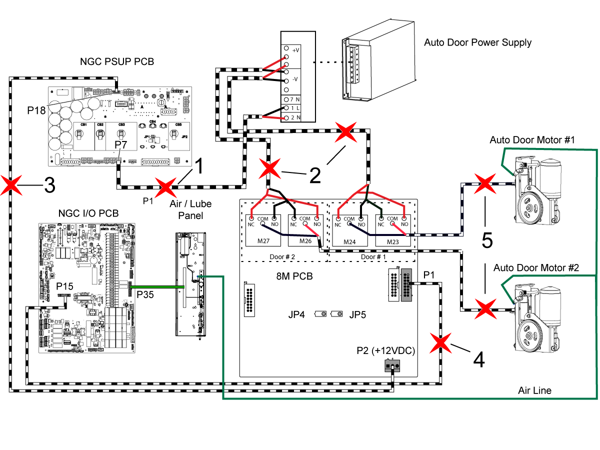 5. 8M PCB to Auto Door Motor 1 and 2.
