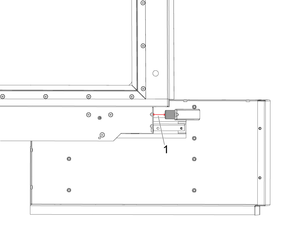 Open the window [1] to the end of its travel and verify that the sensor [2] state changes when it is at the position. If not adjust the position until the switch marks when the window is fully opened.