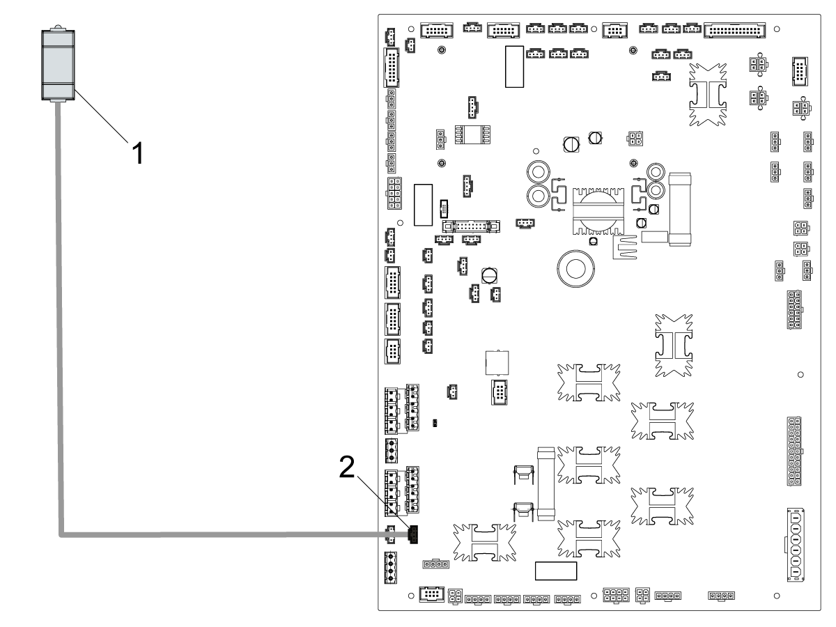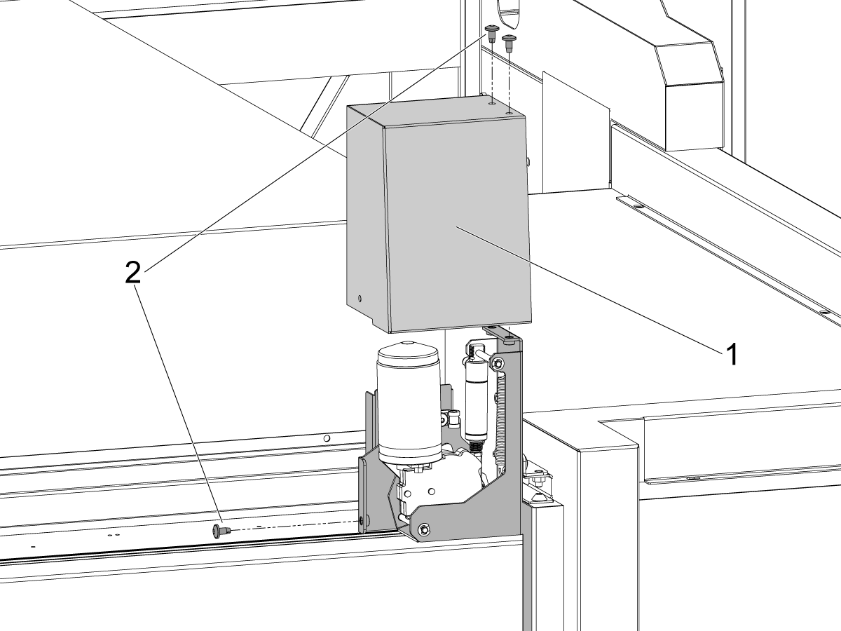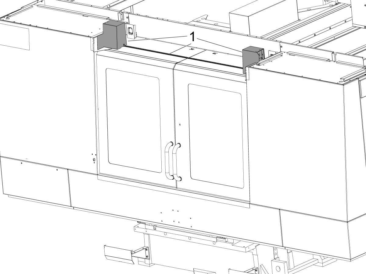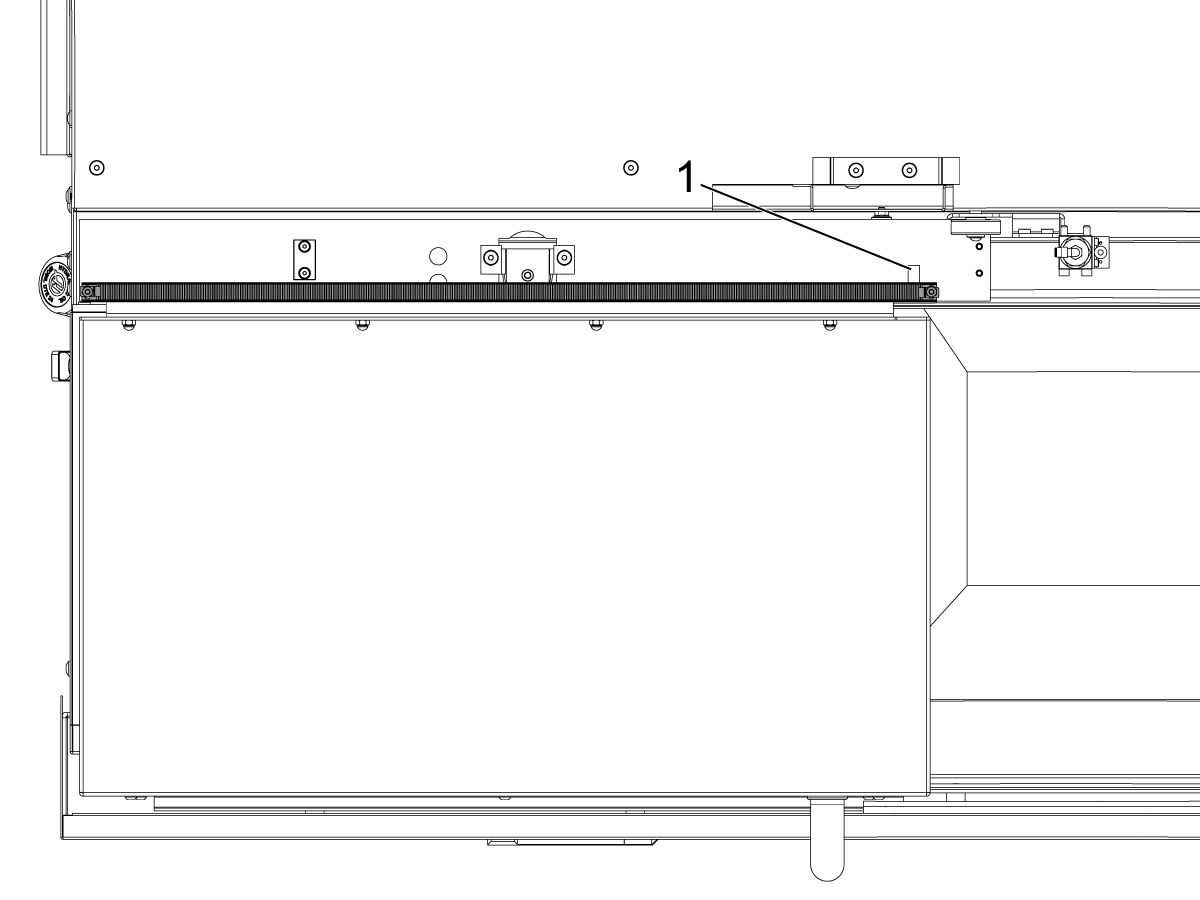 Install the door fully open sensor [1] and connect the other end of the cable to the SIO PCB P27 Front door fully opened input.