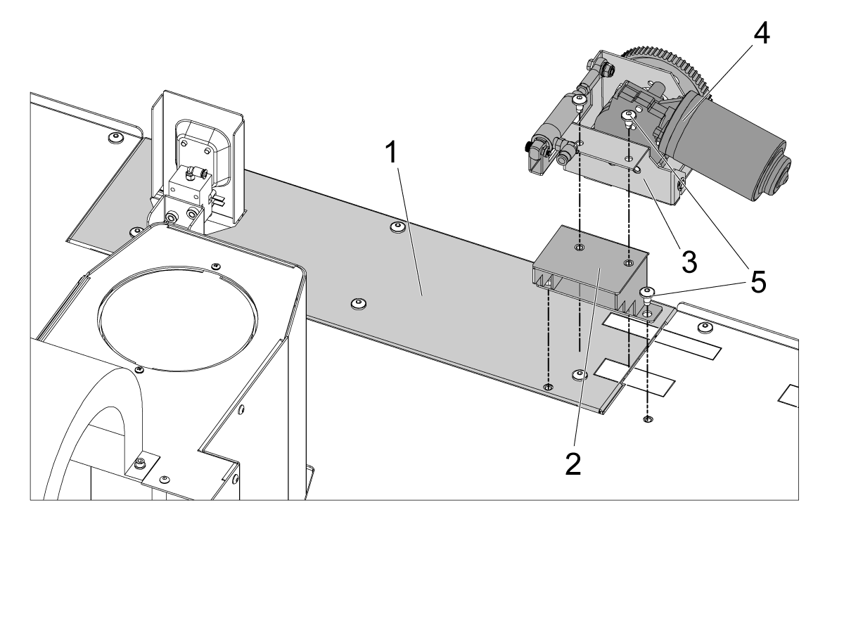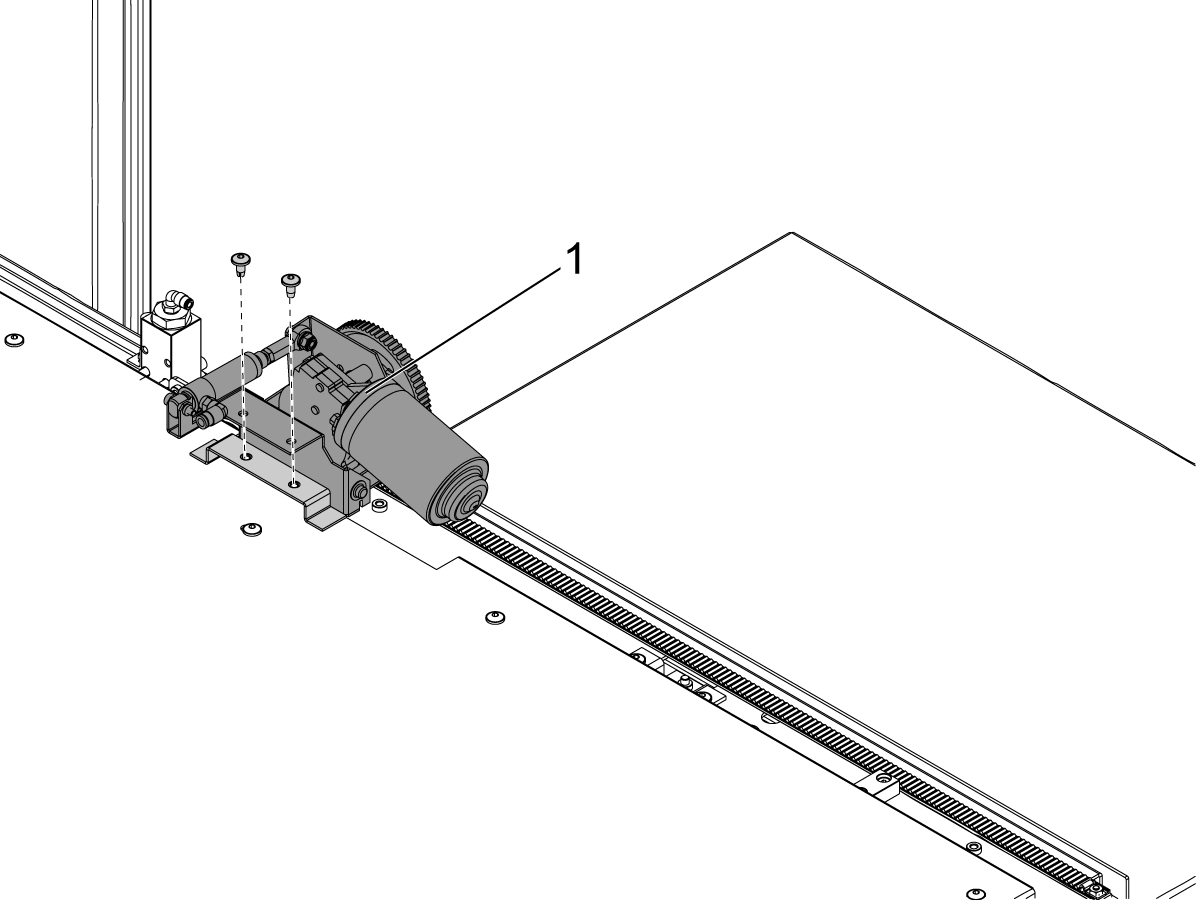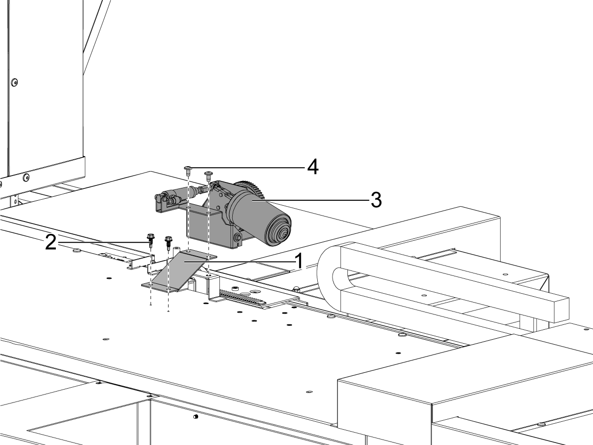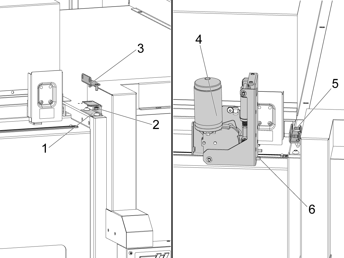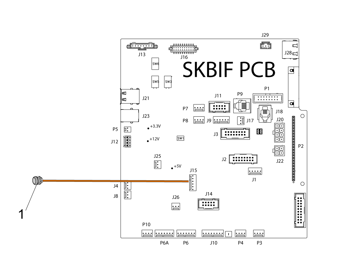 Install the door fully open sensor [1] and connect the other end of the cable to the SIO PCB P27 Front door fully opened input.