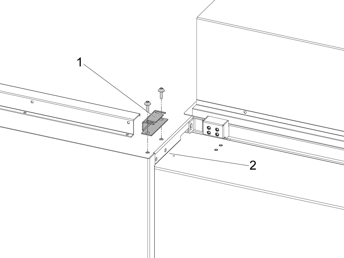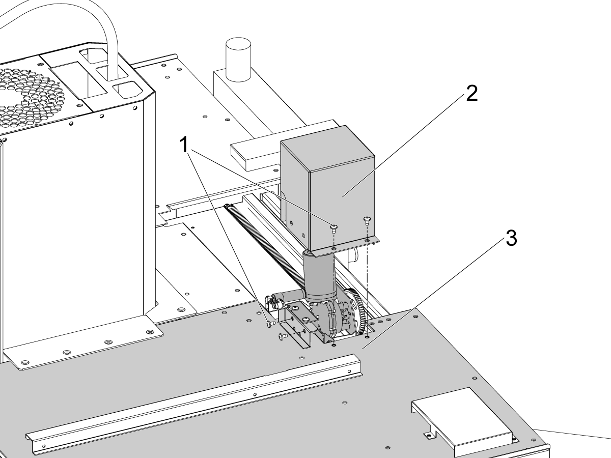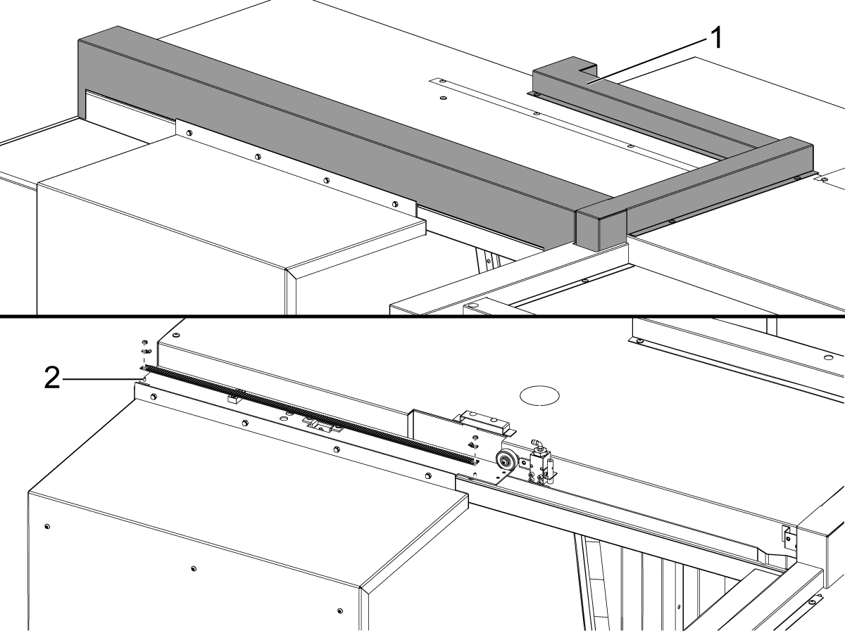 • For machines built after July 2021, the LVPS should have (2) pem nuts [1] on the existing through holes on the top of the LVPS and the 6-32 nuts are not needed to install the 350W CAN Autodoor Power Supply.