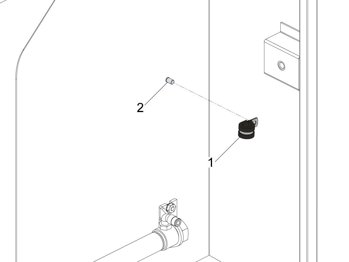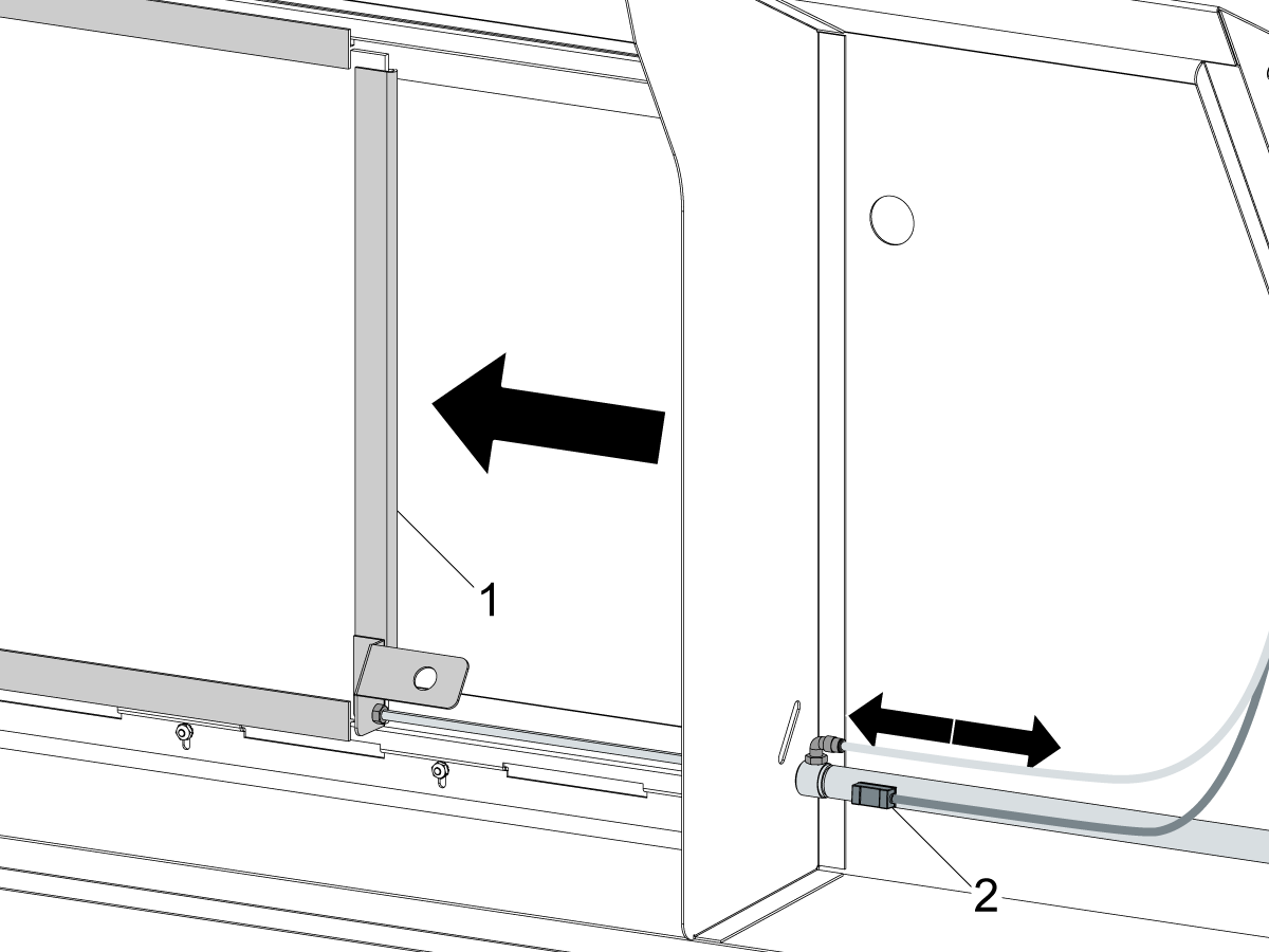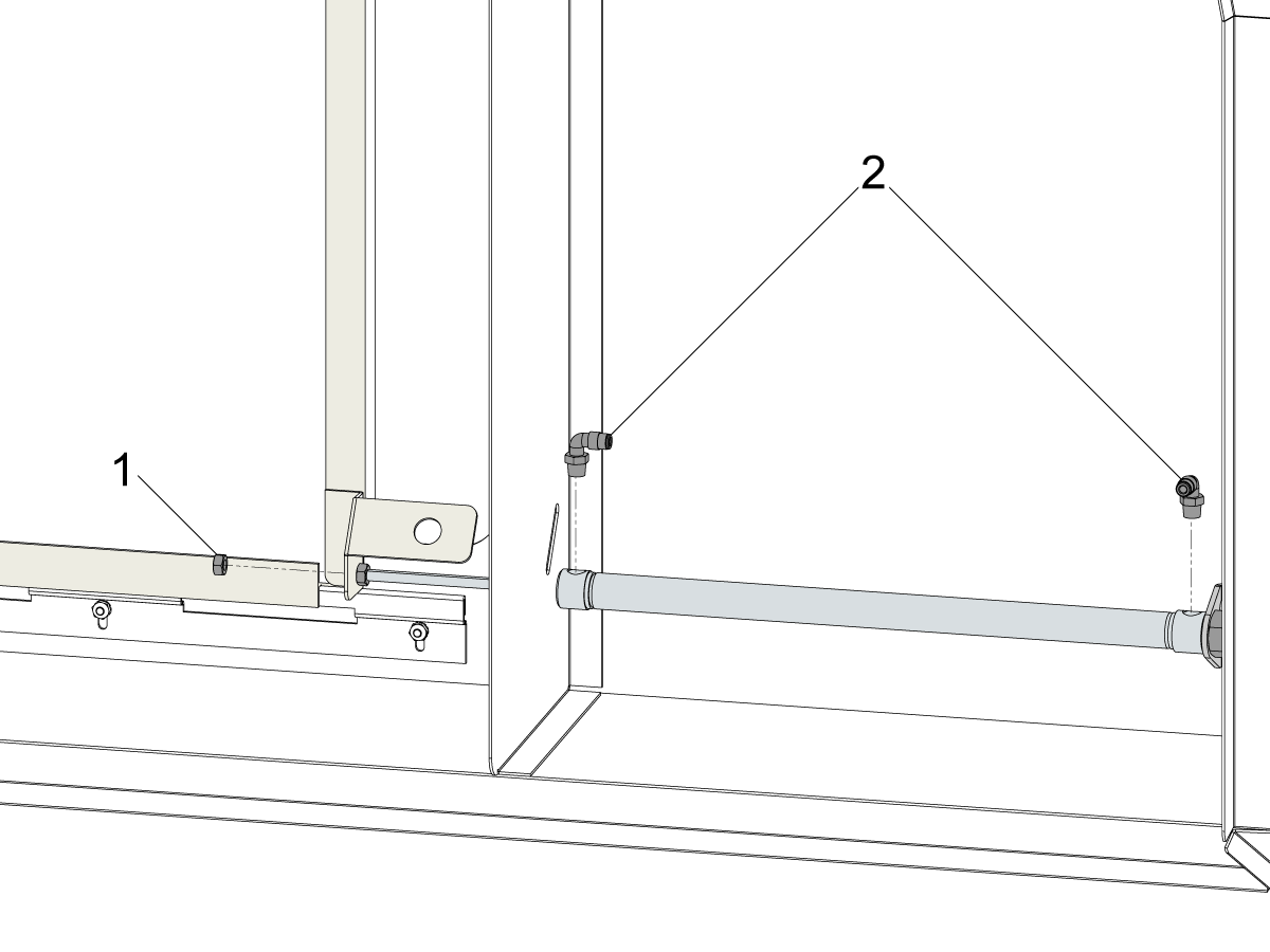 Install the provided hose clamp [1] to the door [2] and run the air line and the sensor cable through it.