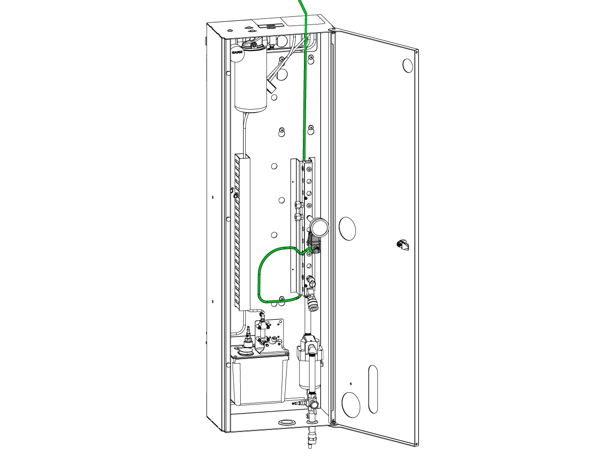 Note: Do not disconnect the air line from the Air / Lube Panel to the autodoor air cylinders.
