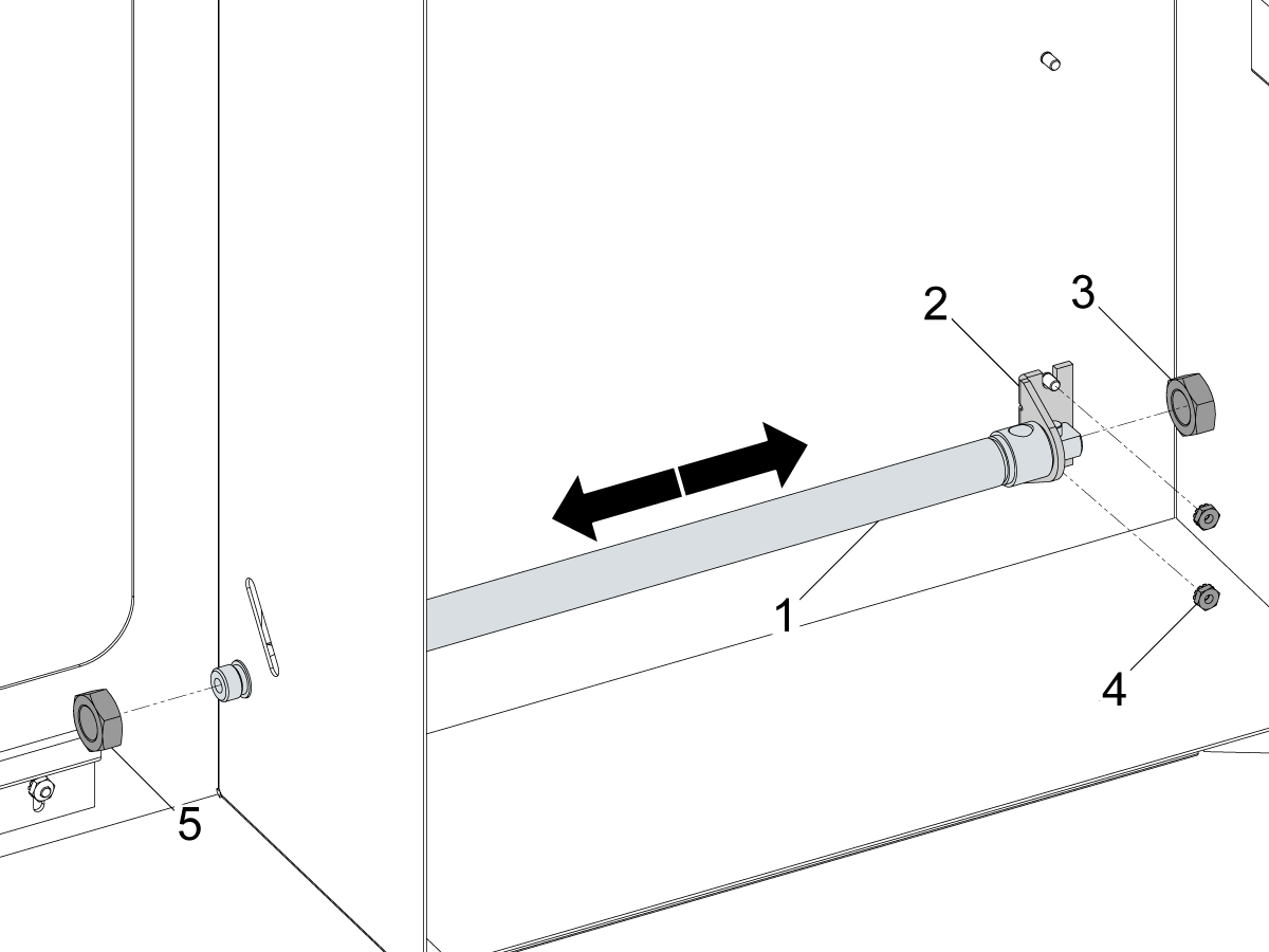 Slide the mounting bracket through the door wall and use the provided nuts [4] to tighten it onto the door studs then finally install the locking nut to hold it in position [5].