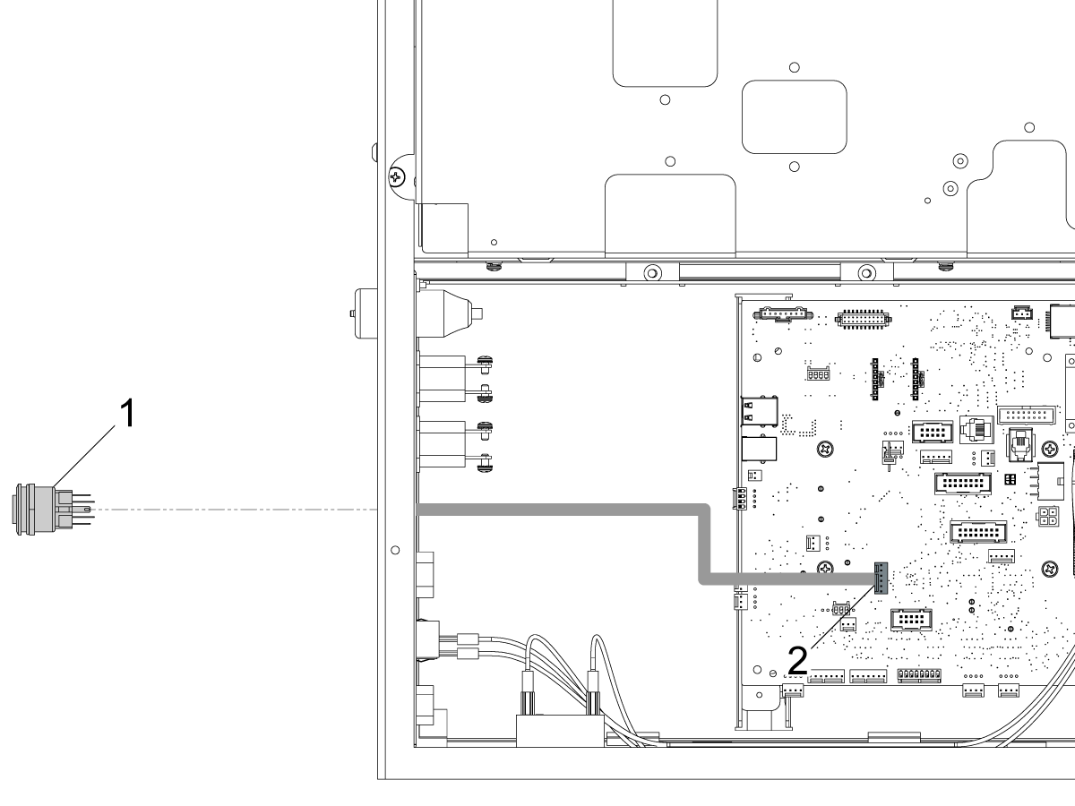 Install the autodoor button [1] in the pendant and connect it to J15 [2] on the SKBIF PCB