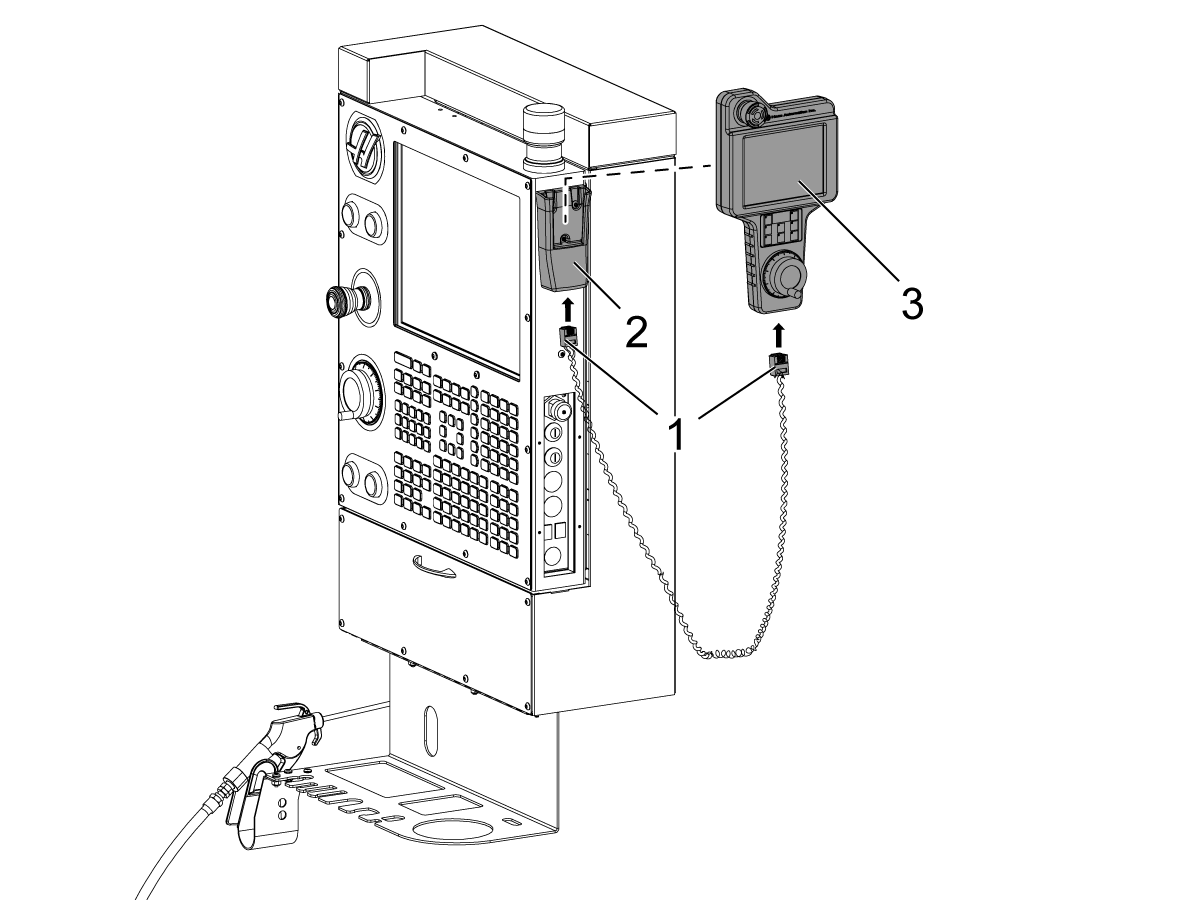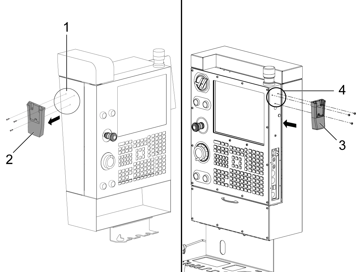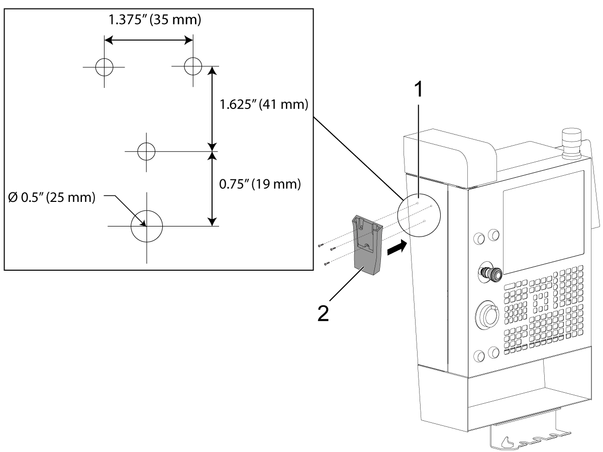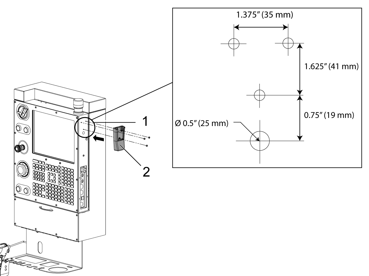 Install the HOLSTER [3] to the right side of the pendant using the (3) BHCS 10-32 X 1/2 [3].