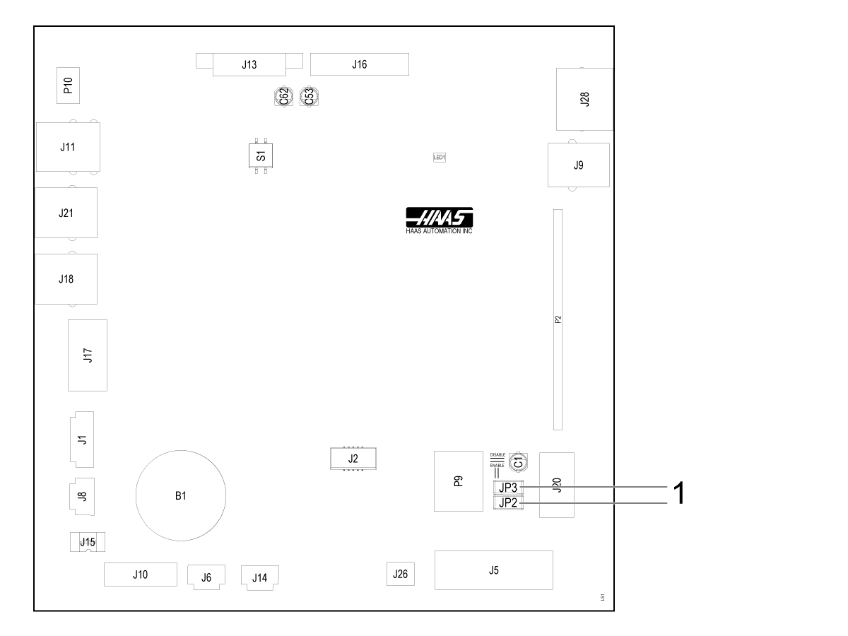 Alarm 9421 RJH EMERGENCY STOP SWITCH ERROR The E-STOP jumpers JP2 & JP3 on the SKBIF PCB are in the horizontal position. Orient the E-STOP jumpers to the vertical position on the SKBIF PCB to enable the RJH E-STOP. Cycle power the machine to clear the alarm.