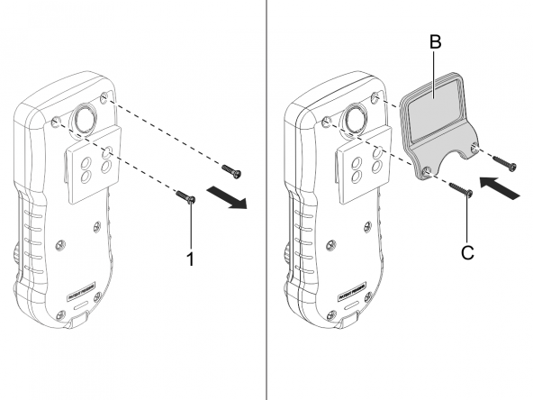 Remove the (3) BHCS 10-32 X 1/2 [1] to remove the HOLSTER [2].