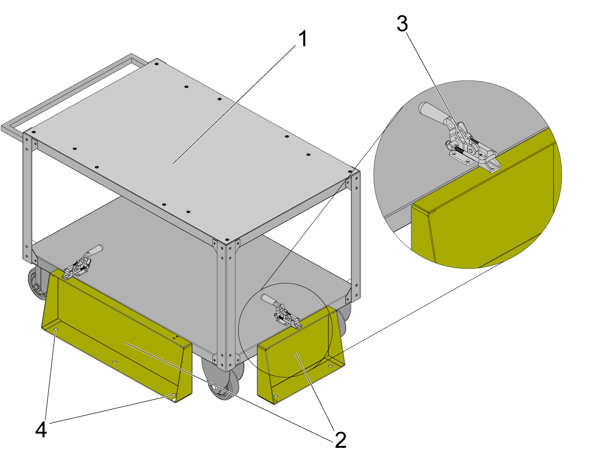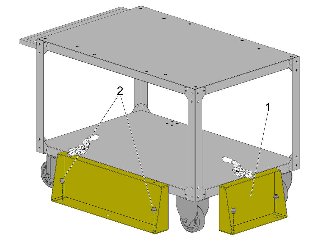 Clamp the anchor plates [2] to the parts table using the locking clamps [3].