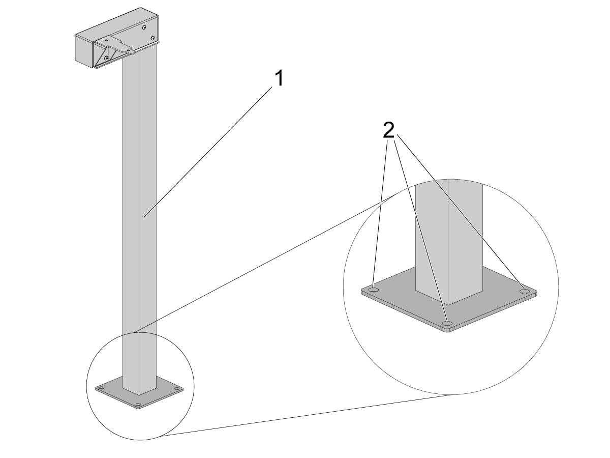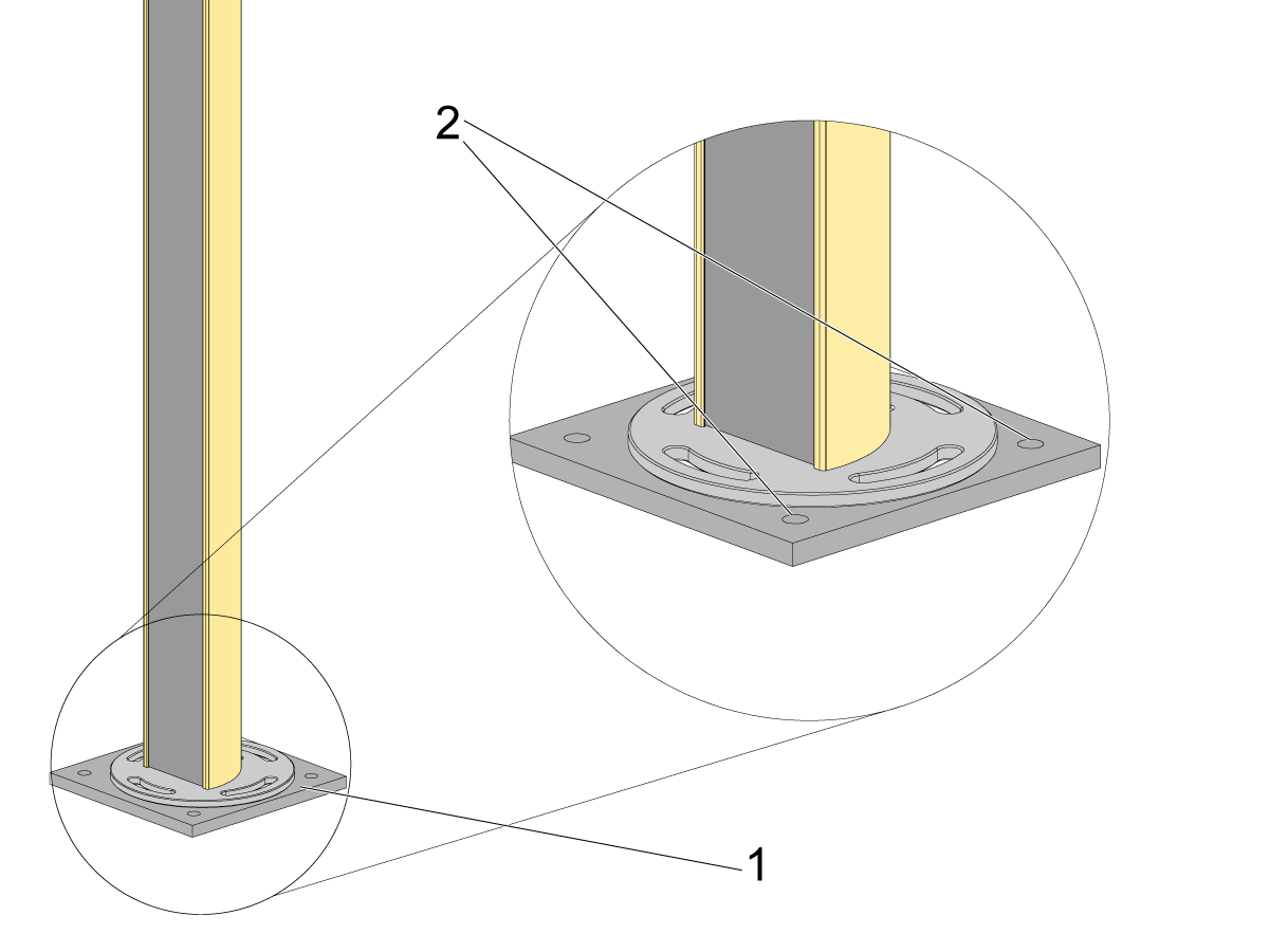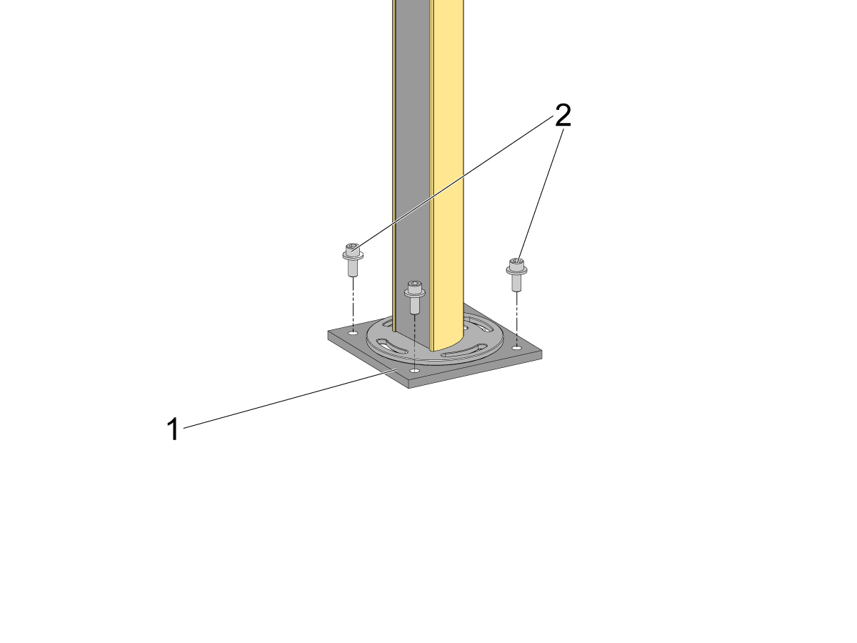 After the anchors have been set, move the light curtain posts back into position so that the mounting plate [1] is aligned with the anchors.