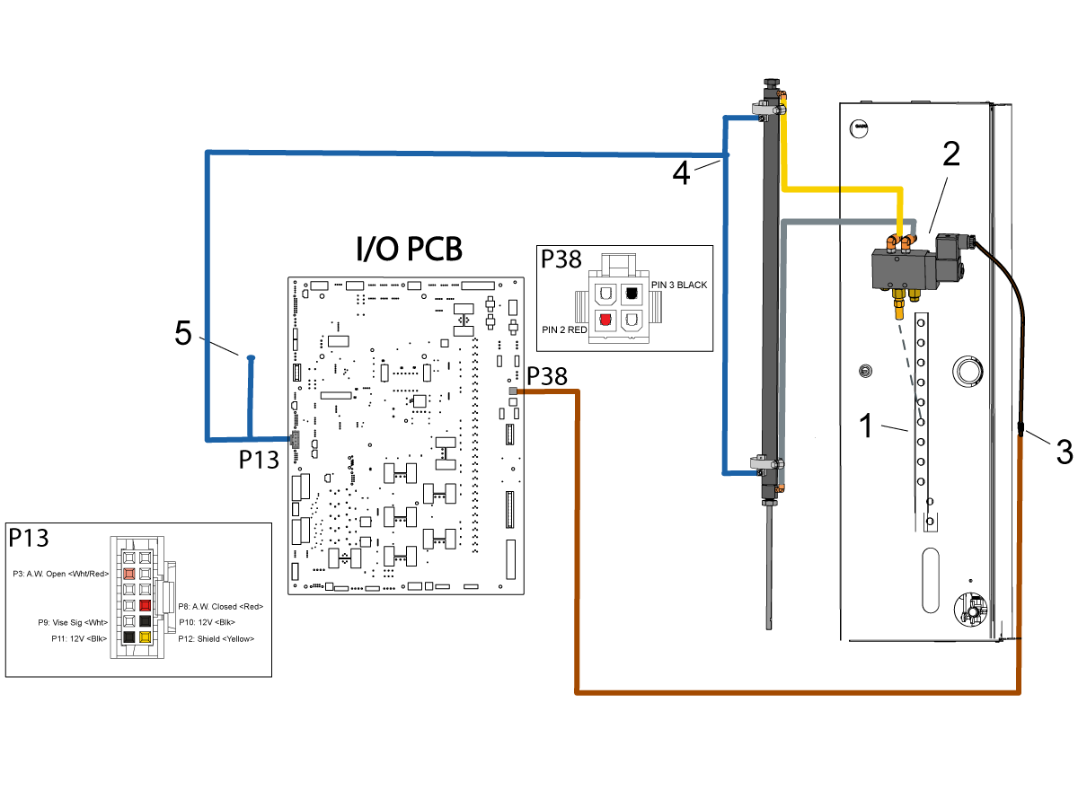 Splitter cable 33-1144 [3] connects to P38 on the IOPCB and to the solenoid's connector.