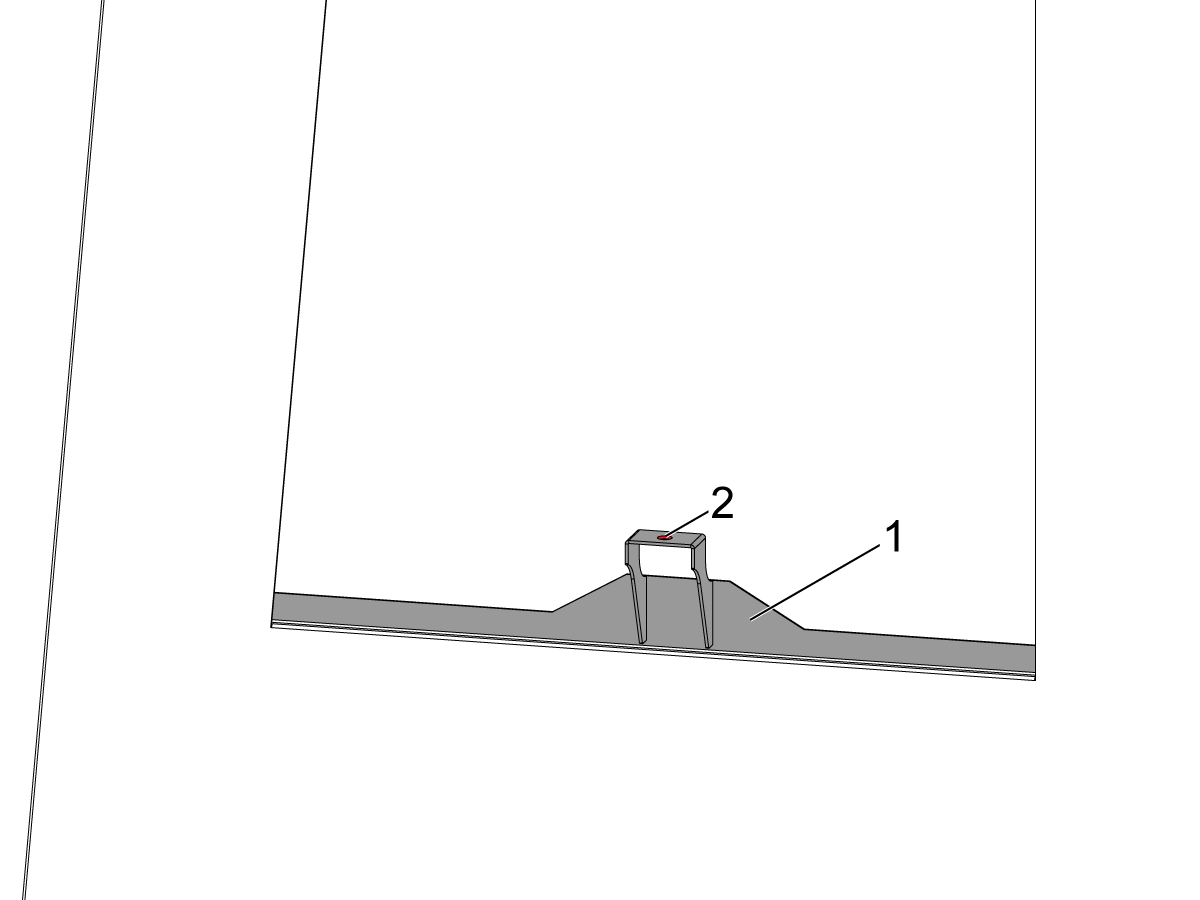 Add SikaFlex inside the new window bracket [1] to attach to the new window. Make sure the piston rod's hole in the window bracket [2] is aligned with the center of the window.